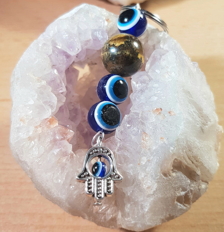 The 'hand of Hamsa' is also an amulet used for protection to ward off any evil. The hand stands for Power, Protection, Good Health and Good Fortune. (See bracelet and keyring).